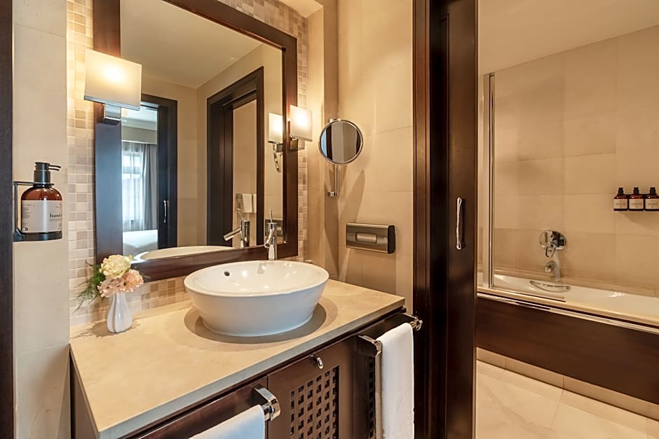Guests will have a special experience as this double room provides a hot tub. Offering free toiletries and bathrobes, this double room includes a private bathroom with a bath, a bidet and a hairdryer. The spacious air-conditioned double room offers a flat-screen TV with satellite channels, soundproof walls, a tea and coffee maker, a wardrobe as well as city views.